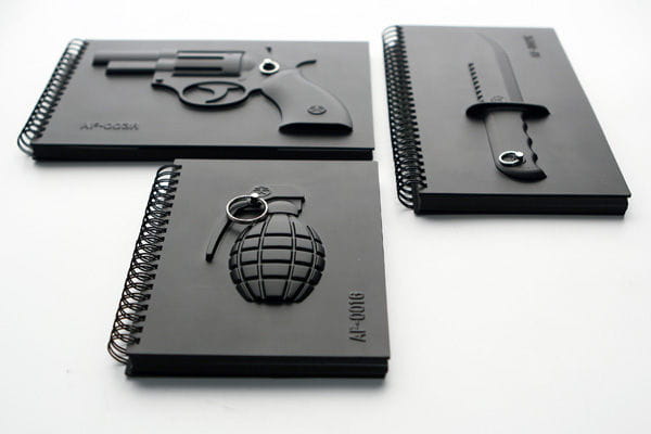 Ta seria notesów to świetna propozycja zarówno dla miłośników militariów, męskich gadżetów i twardzieli, jak również osób łagodniej nastawionych do życia. Broń bowiem nieodzownie towarzyszy mężczyźnie od wieków, podkreślając jego siłę, zdecydowanie i męskość. Jednak designer tworzył serię militarnych notesów z przesłaniem, by przemoc zamieniać w piękne słowa i rysunki zapisane na stronach notesu. Jak wiemy słowa są i tak najpotężniejszą bronią.