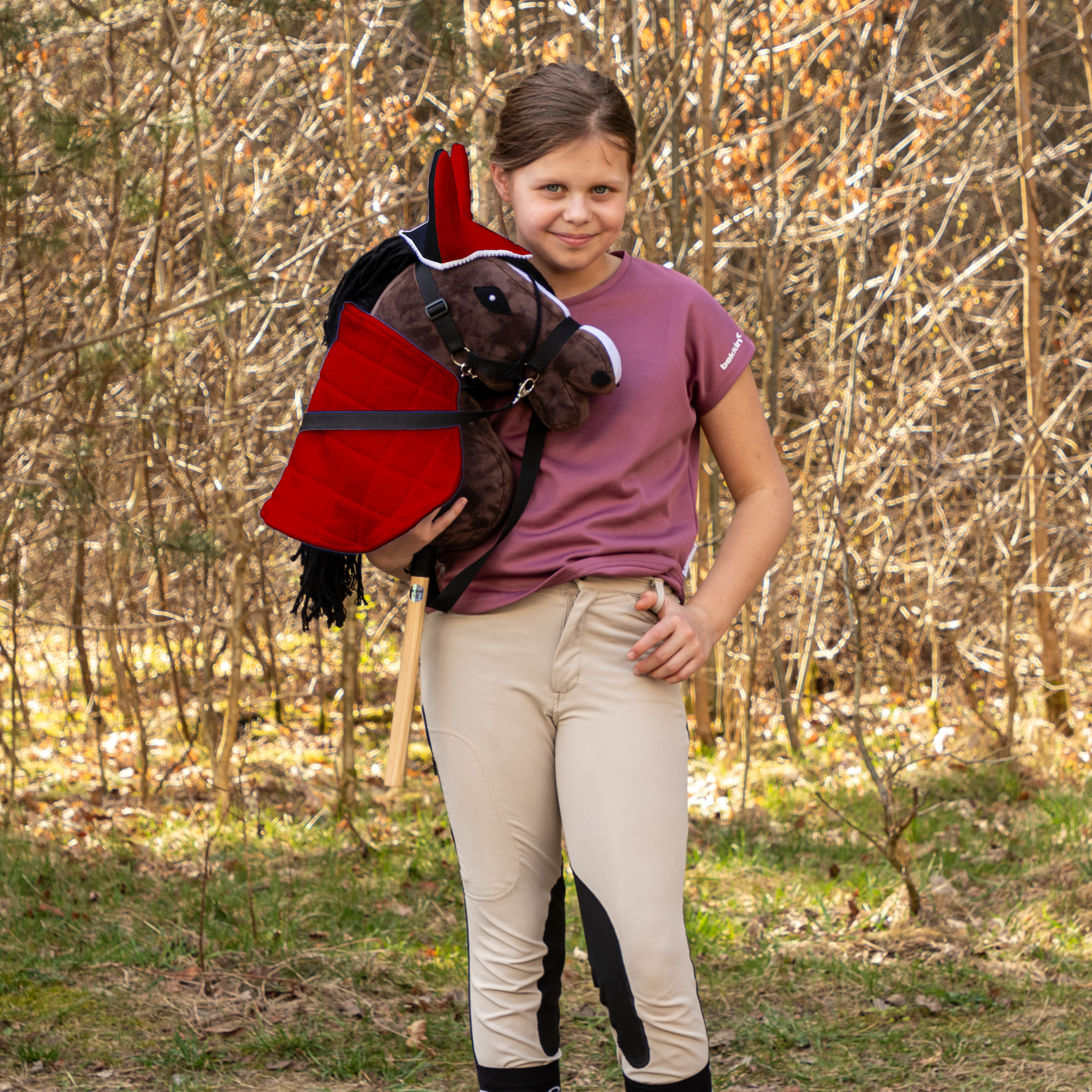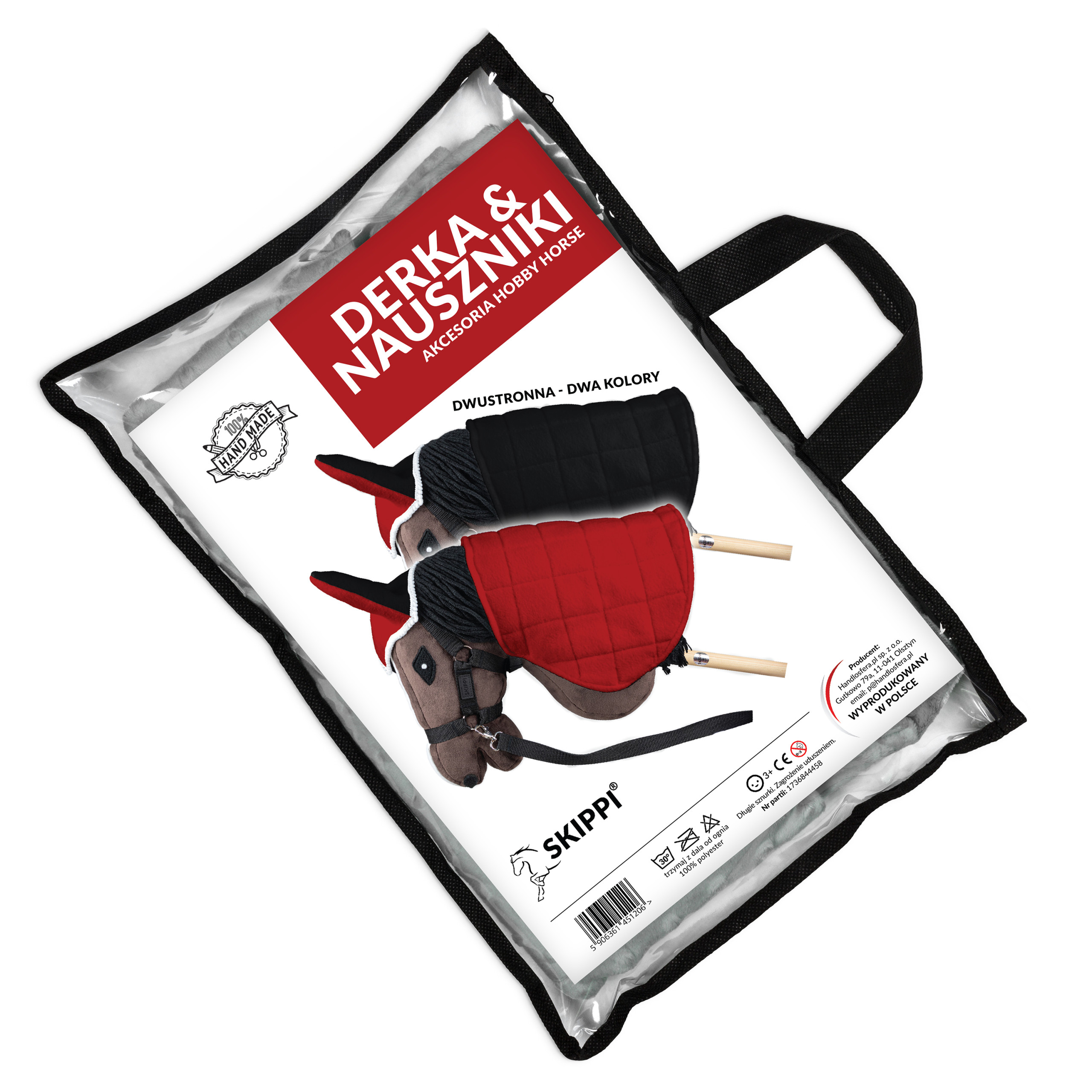 Derka dwustronna i nauszniki Skippi dla Hobby Horse - czerwona i czarna