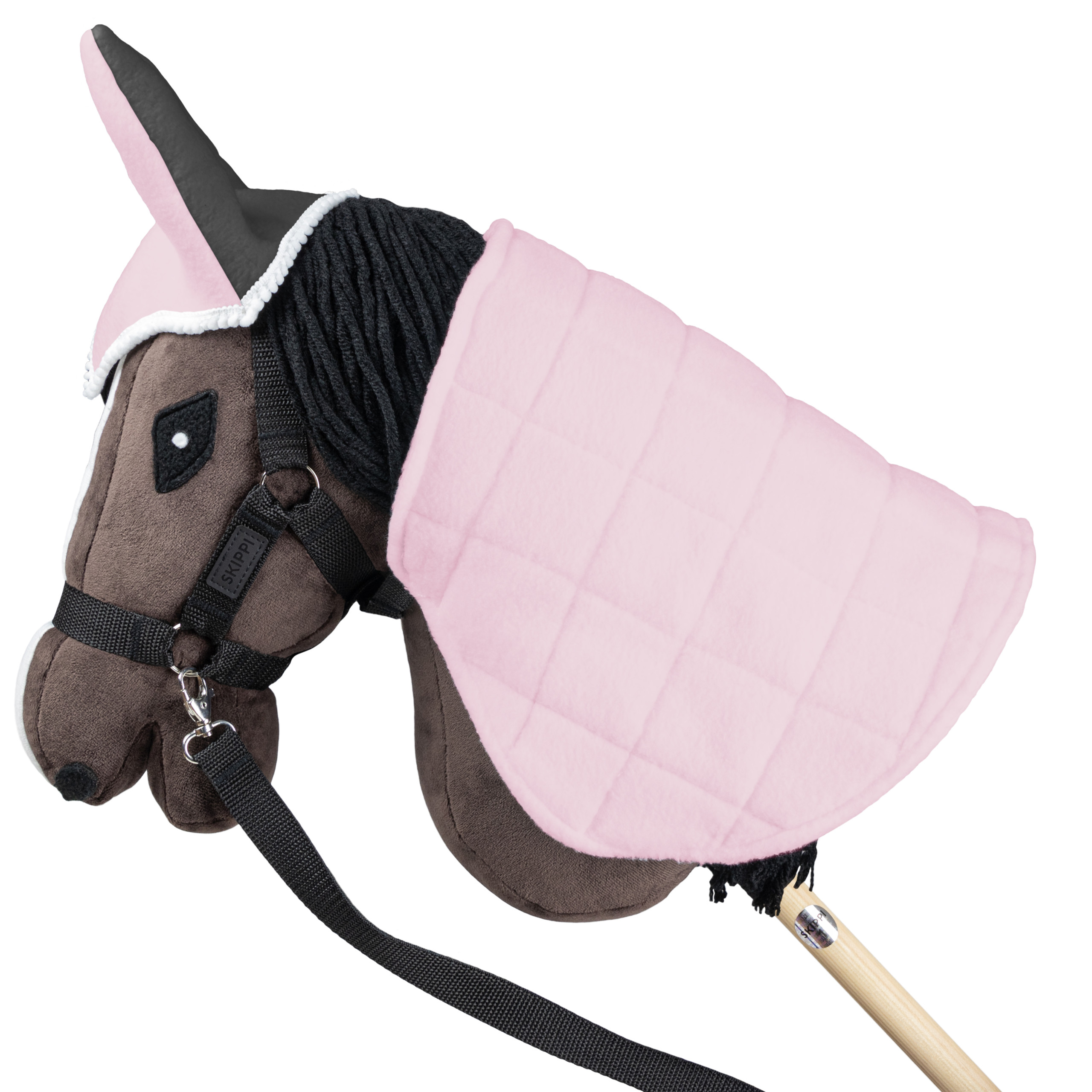 Derka dwustronna i nauszniki Skippi dla Hobby Horse - różowa i szara