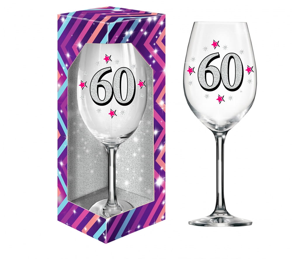 "Jedna lampka po pracy dla relaksu" z naszym giga kieliszkiem nabiera zupełnie nowego znaczenia. Owy kieliszek zmieści bowiem aż 640ml płynu i pozwoli naprawdę dobrze się zrelaksować. Dedykowany jest wszystkim dumnym 60-latkom, ponieważ udekorowany jest dużą brokatową sześćdziesiątką. Zapakowany jest w kolorowy kartonik i gotowy jest do wręczenia w prezencie na imprezie urodzinowej.