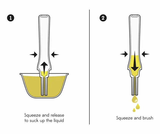 - gadżet służy do rozprowadzania oleju, sosu i innych płynnych substancji na jedzeniu,