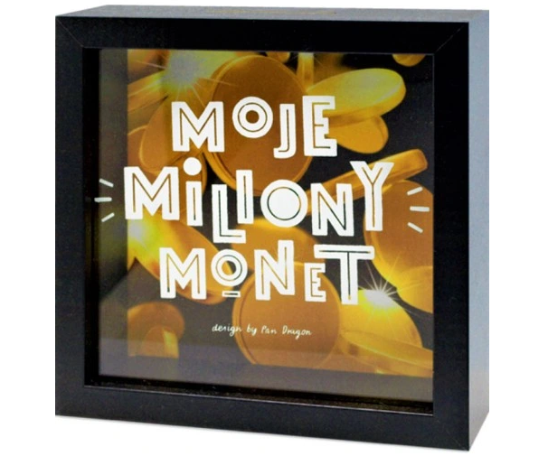 Pieniądze i wszelkie formy na ich przechowywanie to klasyczny, zawsze sprawdzający się prezent. Dlatego jeśli szukacie pomysłu na prezent to podrzucamy propozycję - skarbonkę z szybką z przodu, oraz napisem Moje miliony monet! Oczywiście podarować ją możecie z albo bez zawartości, sama w sobie też jest fajnym prezentem :)