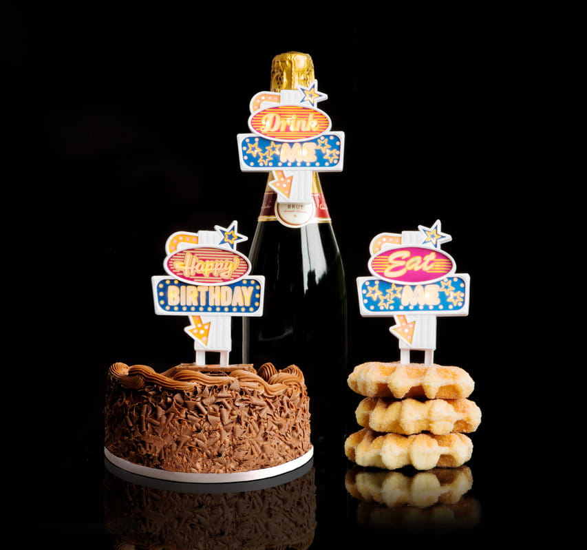 Zaprojektowany w stylu retro na wzór kolorowego neonu topper - dekoracja na dania zarówno słodkie jak i słone