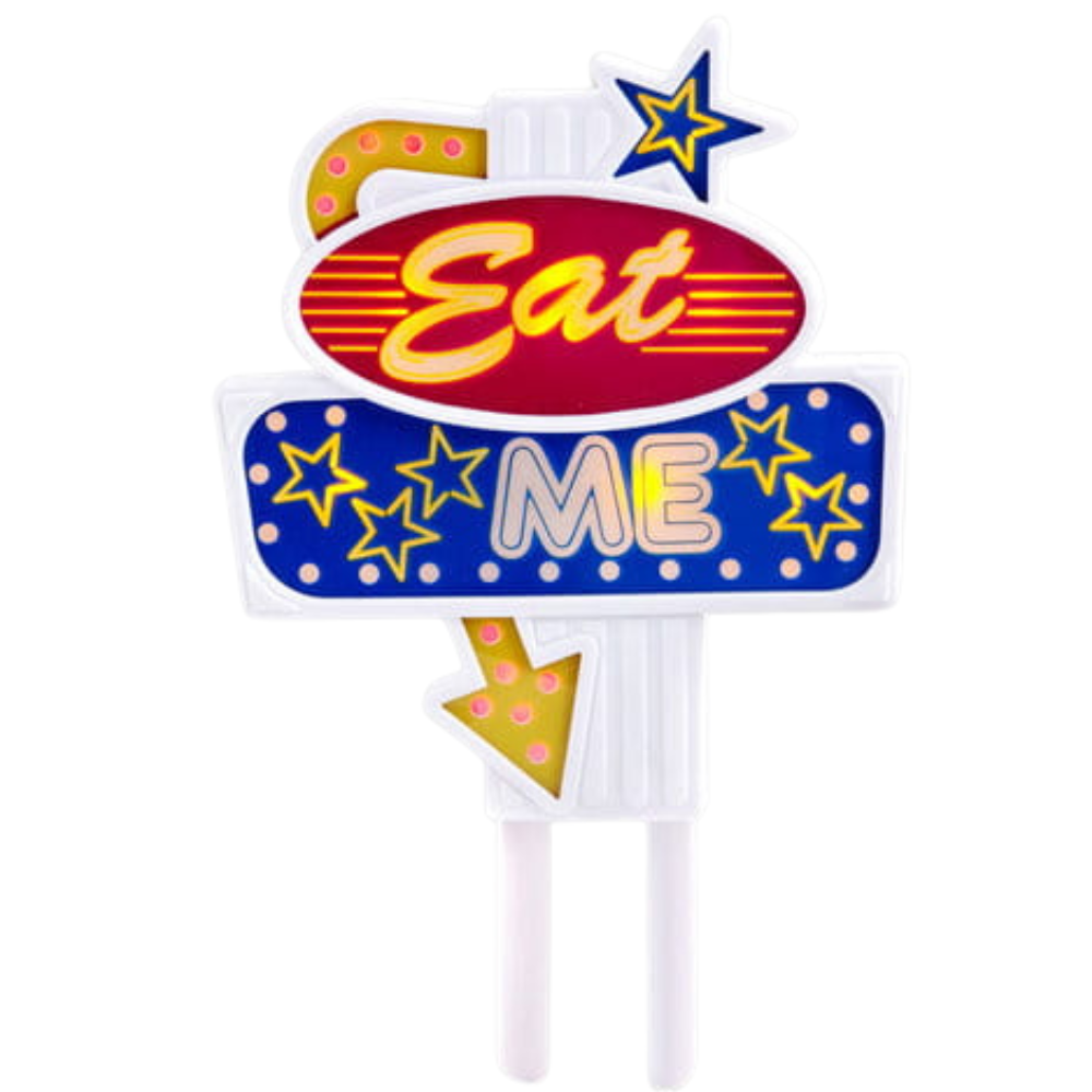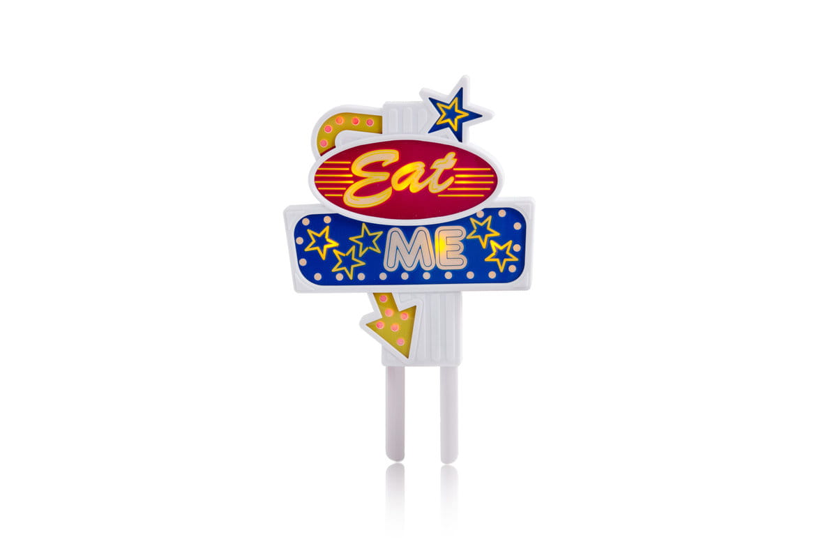 Od teraz udekorujesz swoje dania w iście amerykańskim stylu! Świecący topper z napisem Eat me! (Zjedz mnie) sprawi, że twoje danie nie zostanie niezauważone, nawet jeśli będzie na stole z masą innych, równie smacznych potraw. Więc jeśli chcesz zwrócić uwagę wszystkich, musisz udekorować jedzenie takim topperem! Dosłownie aż się prosi o zjedzenie :D (twoje danie, nie topper oczywiście)